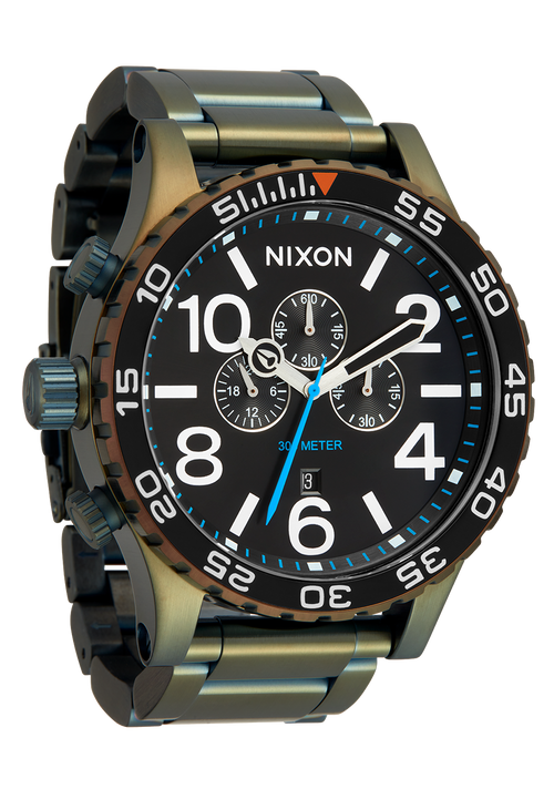 The Original Style Icon. The 51-30 Chrono is the ultimate statement piece that bridges the gap between fashion and function. It commands the room at first glance with its oversized dial, boldly printed indices, and custom molded hands. Choose from a wide range of colors and finishes to find your perfect 51-30. This is the OG of big-time style.